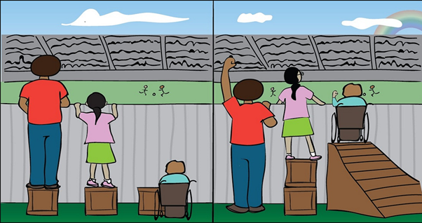The following illustration by Maryam Abdul-Kareem shows the difference between equality and equity.